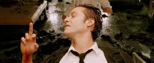 而诸如毒液的人设,比起钢铁侠、蜘蛛侠这种正面英雄,个人认为最相近的,就是基努·里维斯版《地狱神探》,那位颓废帅气的老烟枪,叼的烟拿着十字架喷子,冲进恶魔群里一顿乱打。