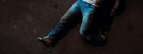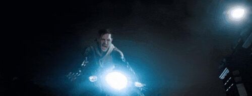 《毒液3》的最后一刻,完完全全复制了上述场面,埃迪跨上摩托车,毒液人车分离,埃迪被种种重重摔在地上,姿势依然是那个有点搞笑的不规则“大”字形……