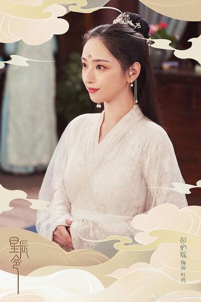 红鸾仙子由彭必瑶饰演。作为掌管星辰姻缘的仙门圣女,她身着霓裳羽衣,发间点缀赤色流苏,映照天机。凭借星辰之力,她推演宿命,却因千年劫数而不得超脱。表面温婉慈悲的她,实则背负着改写天命的禁忌使命。每当月圆之夜,红鸾仙子便会显化于人间,以姻缘红线牵引众生情劫,然而自身却在宿命轮回中逐渐迷失本心。