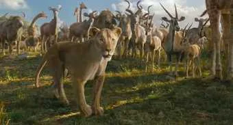 另外这电影在“童话感”和“真实感”之间的割裂突兀感更强烈了,比如专门科普了一下狮群是母狮子负责狩猎,公狮子一般不参加狩猎,也顺便给木法沙狩猎这个BUG给打了个补丁,但问题是前面演完狮群知道大象要来时害怕的上蹿下跳,后面的白狮子是怎么有脸对着一群有不少大象的动物说“保证不会伤害他们”的?且不说武力碾压狮子的大象和犀牛这类的,就是那一大群的长颈鹿算起武力值来,和狮子1对1也不会输的,结果这部电影一会儿感觉是在《动物世界》科普,一会儿又是童话系的天命王者玛丽苏,然后还有纯超级系的堪比尤达大师的狒狒大师,隔三差五就让人感觉有些囧TL。。。