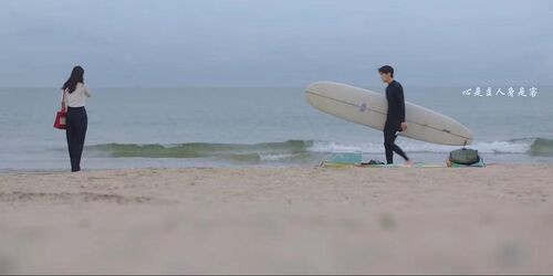 洪斗植第一次看见尹惠珍,是飘浮在滑浪板上,放空的时候。扭头看见坐在沙滩上的白衣女子,满怀愁绪,风吹动她的长发。