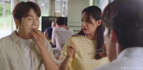 两个人第二次相遇,在“白天的咖啡、月夜的啤酒”店里。洪斗植吹着口哨进去:“啊,你穿了我的拖鞋。”