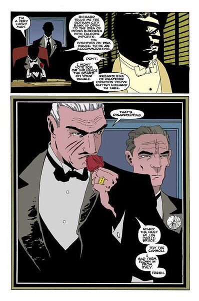 “罗马人”卡迈恩法尔科内“罗马人”卡迈恩法尔科内,哥谭前任黑手党教父。在哥谭市还是一个被黑帮所统治的城市的时候,卡迈恩·法尔科内是其中一个非常强大的黑帮首领,绰号"罗马人",以冷酷无情和扩张主义著称。他一手经营的黑帮系统常被称为"罗马帝国"(The Roman Empire)。法尔科内实际上控制了整个哥谭市,他与哥谭市市长,市议会和警察局长基里安·B·罗布(Gillian B. Loeb)相互勾结。因此,法尔科内一次次从哥谭市的法律的制裁中全身而退,直到蝙蝠侠的出现。