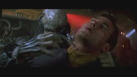 那么博格个体又是怎么来的呢?答案是:同化!如图,它会一手把你擒住,用又粗又长的管子插进你的颈动脉、颈静脉,往里注射纳米机器人,不一会儿,你也是一只生不如死的博格个体啦