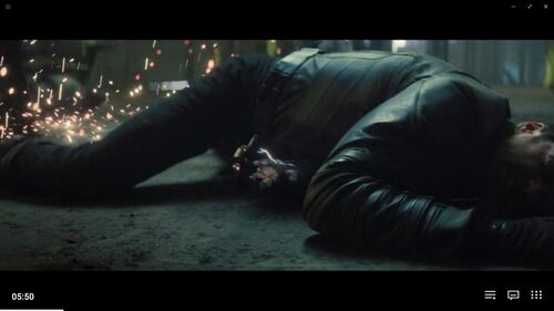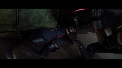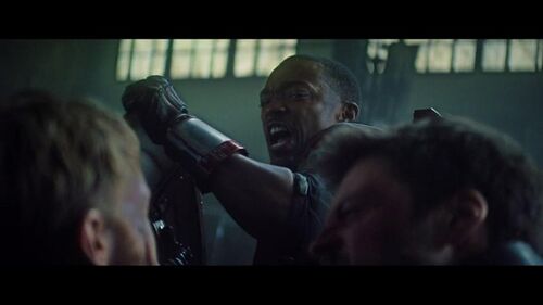 结果,左臂其实没任何事。这个画面设计,只是为了在后面的动作安排中,让新美队和猎鹰单独过两招,不要让冬兵过早介入。这是又一次错误安排了观众预期,因为如果就想让观众理解“冬兵会懵一会”,体现出他头被撞到、落地没动弹就足够了。特意做手臂漏电的效果,并不是个好的选择,是个画蛇添足。