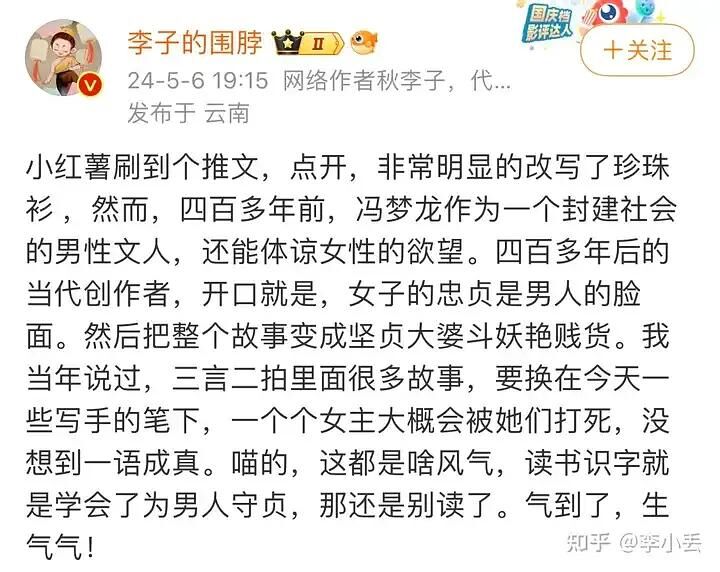 问题是,我们都解放那么多年了,写文的作者文化水平大都不低,可是写出来的东西,怎么还是一股子封建味儿呢,嘴上说着大女主,实际上还是在干雌竞打小三的把戏。