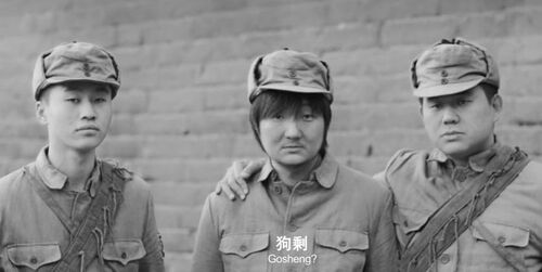 狗剩靠装死逃过一劫,跟大部队走散了,只好独自逃回家,成了逃兵。