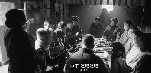 这里导演特意给了几分钟的大特写,拍蒋龙吃丸子。