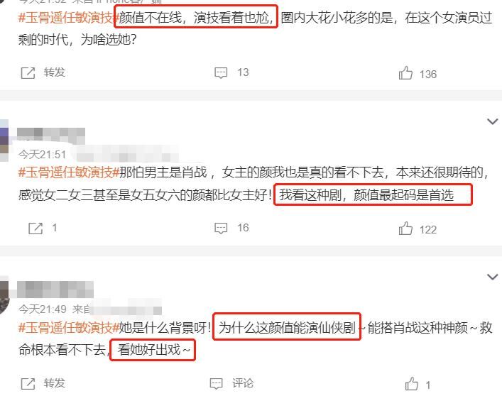 不少网友看过她在剧中的扮相和演技后,给了她好大一个差评,还质疑为什么要选这样颜值的女主。
