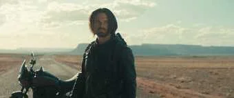 且说,再度出征,黄沙漫卷,战车轰鸣。忽见装甲车列阵而来,铁蹄碾地,尘土飞扬。众人心惊胆战之际,烟尘深处突现一骑,摩托如风,破尘而出!但见来者,黑衣紧裹,墨镜遮面,冷峻非常,威风凛凛。只一抬手,两辆装甲车轰然翻覆,碎铁横飞。继而只身夺取霰弹,一击破前车钩索。又见其疾停摩托,车头朝下,转身落地,振金之臂探出,擒索在手。电光火石,手臂挥舞,连绕两圈,狠狠掼地!只听“轰”的一声,末后一辆装甲车也应声倾覆。尘定风止,众目睽睽,只见那人立于风中,姿态潇洒,神情冷峻。此人者,非他,正是巴基·巴恩斯是也!