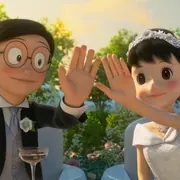 《伴我同行》这两部,看了才知道和那些没关系。主体是坐着时光机穿梭,大雄完全彻底从根本上不支棱了,主要矛盾就是大雄的恋爱烦恼、结婚疑云(单身派对婚礼还有其他等等情节,充分说明这个系列确实是面向成年观众的,完全可以使用这种批评方法),格局一下子小了。角色当然有缺点,这两部电影里大雄的缺点以前作品里或多或少也有,但也不能把所有缺点一口气占全吧。咱们梳理一下——