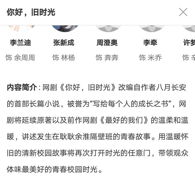 【以下为原评,从主旨角度来谈(仅涉及28集的旧时光)。多图预警。】 截图展现的是剧方公布概念版预告时所附简介,现在还是这个。突出了书的重点——“成长”,同时也是该剧的重点。