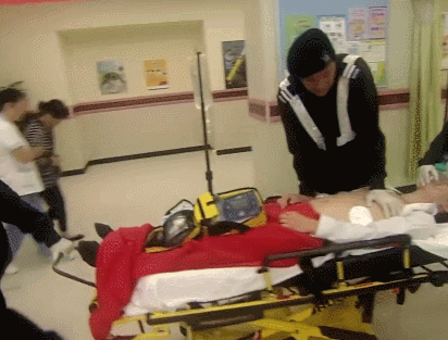 将患者送至医院了,镜头里面,双手依旧在卖力按着患者的心脏。