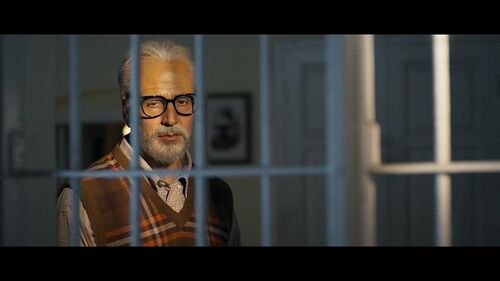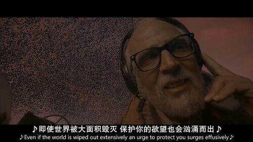 这一段回忆的情节里,活着的鸟类学家眼神温柔,苍白的胡子和头发让他看起来格外儒雅,黄色色调的画面让回忆成了机器人电影里最温馨的片段,蓝色冰冷的钢铁与黄色温暖的小屋对比,如果可以,真希望回忆里的日子还能继续。露天的院子让鸟儿随意飞进飞出,老人给小孩讲解鸟类的名字和生活习性,老人提着长长的炮筒追随鸟儿的身影与浩浩荡荡的鸟群融汇在一起,完全是一副岁月静好的美丽人生,但是随着鸟儿成群结队的迷失在城市里,这样的美好场面已不复存在。