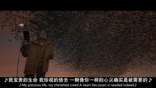 这一段镜头是本片的颜值担当,无论是对鸟群起飞还是太阳光线的把握,完全可以当作教科书式的文艺片段,再加上影帝AK的演技和颜值,观影者看完这一段多半会觉自责人类为什么要使用手机,他只是一个热爱鸟类并把一生都奉献给小鸟的大叔啊!