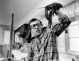 woody爱在电影里穿插笑话给我们:"一个家伙去看医生,说医生哎,我哥哥疯了,他以为自己是只鸡.医生说,那你干吗不把他带来?那人说,可是,我想要那只蛋."