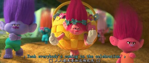 1. 在一段舞蹈中,波比公主(Princess Poppy)身着一个夸张的超大篮子和带着厚重的白色手套,这个是对影片的男主角配音演员贾斯汀·汀布莱克(Justin Timberlake)在综艺节目《周六夜现场》(Saturday Night Live)中的角色的致敬。