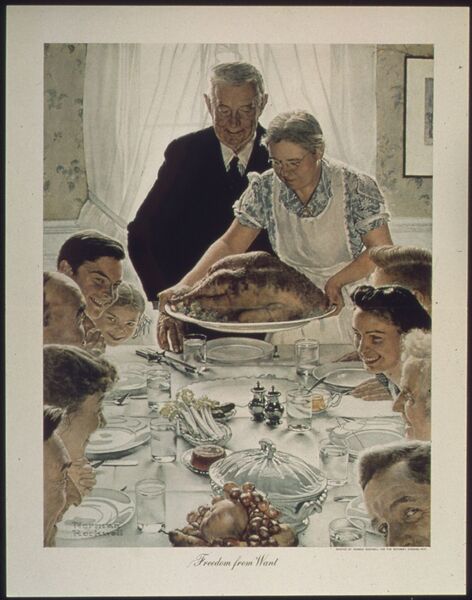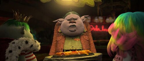 2. 当波比和布兰(Branch)潜入博啃城堡时,墙上有一副博啃王族在餐桌上吃精灵的画,这幅画的原作是美国画家诺曼·洛克威尔(Norman Rockwell)的作品《免于匮乏的自由》(Freedom from Want)。