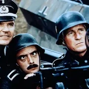 写给人类史上最伟大的喜剧片,『虎口脱险』,一部1400万法郎打造的恢宏巨著,一部喜剧界至今难以超越的传奇。写给中国电影史上最棒的译制片,『虎口脱险』,一次凝聚了那一代最优秀老戏骨心血的配音,一部配音效果丝毫不输原声甚至更加精彩的影片。今年,是她的50岁生日,中文译制片上映的第35个年头。在那个没有任何特效可言,就连飞机被炸都只能粗劣地涂白油漆代表的年代,电影唯一吸引观众的方法就是剧情和演技。而到现在,已有三代人在它精巧设计的剧情和演员出神入化的演技带来的笑声中成长。<图片18>为了这篇文章,刚又去看了这部片子,第17遍。=======下方有剧透,剧透,剧透,小心!========先说片名:La Grande Vadrouille,法文原意:一次盛大的闲逛。什么鬼?这个让人完全联想不到战争的无厘头片名,就这样戏谑地将正宗法式幽默表现得淋漓尽致——连国破家亡,生死未卜的战争,都能用“闲逛”二字轻松带过,除了法国人还有谁。可如果把片名直译来,国人一定没法理解这种幽默。于是『虎口脱险』这个听起来险象环生,刺激无比的名字诞生了。这个看似只是比喻意义的“虎口”,却在电影一开始(中队长降落动物园老虎旁),就直接被点了题——好像这片本就是中国人拍的,原名就该叫“虎口脱险”,还有什么译名更加合适?对比下港台的译名『横冲直撞出重围』和『大进击』,甚至英文译名『Don't Look Now... We're Being Shot At!』,无疑都逊色许多。<图片17>影片开场,马达轰鸣,爆炸连连,炸弹如雨点般落下,辅以鲜红和鲜绿不断快速变换的背景,让人心一下就提到嗓子眼,似乎这又是一部以“惊险刺激”为卖点的典型战争片。说好的喜剧呢?<图片15>当烟消云散,清晨来临,飞机冲出云层,色彩基调立刻变成柔和的蓝色,音乐也换成欢快的节奏——机长一边驾机一边吹口哨,哪怕最后机尾中弹,火焰熊熊,只能弃机跳伞,却依旧不改这种欢快。看惯了抗日“价值观”片的我们未免觉得有些太轻浮。然而当看完整部电影,发现所谓的“战争片”竟一个人都没有死掉,甚至几次为了告诉你“敌人尽管很惨,却没有死”而特意加镜头(如酒窖纵火后给德军士兵松绑,击落侦察机后飞行员跳伞),你才会明白导演乌里希望通过这种欢快所表达的思想,一部看似矛盾的『战争喜剧』的精神所在。英国人,尽管有3个,但他们其实是一个人:军人。长年军旅生涯使他们不自觉地表现出同样的特质:英勇而乐观,守纪律肯牺牲(如麦金托什扮妓女),却不失人性(如偷窥裙底、酗酒、亲嬷嬷)。全片中这3人间没有过任何冲突,一切都整齐划一,像同一个人。这种划一不仅在性格上,哪怕在乡间逃命,都会不自觉地吹着同样的口哨齐步而行,仿佛是一次行军——这几秒钟的镜头不仅是个笑料,更是导演刻画角色入骨的神来之笔。<图片8>更有趣的是片中的德国人,德国鬼子。德国人是片中的“敌人”,但他们每个都不是泯灭人性的魔鬼,而只是服从他们长官命令的军人而已。这种种形象都借少校阿克巴赫这个典型表现了出来:打断指挥排练,他会说抱歉;还有那句经典的“我是正规军,不是什么秘密警察。你要不肯说,我就只好把你送交会让你开口的有关部门了。”言下之意,正规军有自己的操守,哪怕在占领区也不会放弃自己的操守;将军庆生,可以在法国人家宾主尽欢,还不忘教导“怕老婆”的法国人男人才是当家的,完全像是好朋友;而包括彼得和两个法国人先后被捕后,也都被人道相待。最令人惊讶的一幕是,跑到法国人家的搜查的德军士兵,竟能毫无怨言地帮助女主人搬箱子!<图片4>此片难能可贵是没有违背史实妖魔化德国纳粹——在历史上,他们确实除了对犹太人一定要赶尽杀绝,对已占领区的其他族人是相对友好的。这点和日本人完全不一样。<图片10>与之鲜明对比的是法国人,斯坦尼斯拉斯和奥古斯丁之间。两人一人是著名的指挥家,连德国人都要敬他三分;另一人却是社会最底层的油漆工,社会上没有任何他的存在感。本来这两人生活一辈子都不会有交集。却阴错阳差被迫共同踏上了逃亡之旅,注定不会合拍。他们各自的缺点,两人之间的矛盾,全都被恰到好处地制造成了笑料。如奥古斯丁胆小怕事又好色,却愿为心上人去逞英雄;斯坦尼斯拉斯当惯了“指挥”,就连推车都要去指挥(而且导演竟让他指挥推了两次车),可另一方面却处处缺乏生活技能,连骑车都不会,使他不得不依赖(或者说欺负)奥古斯丁。他们在片中不断争吵,却每个人也都救了对方n次。他们尽管有种种缺点,却都甘愿为救英国人而将自己陷于危险境地,乃至四处逃亡。看过那么多国家的电影,私以为只有法国人敢于直面甚至自嘲自己民族性格中的缺点,并以此为乐。<图片7><图片19><图片14>读到这里,相信你已明白,导演真正想刻画的:不是出现最早,人数最多的英国飞行员;不是“有人性的占领者”德国人;也不是没来得及写到的朱丽娅或者修女嬷嬷,而是这两个法国人。其余所有人的戏份,都是为了衬托他们俩。毕竟,这是一部法国电影。法国人与英国人,除了英国人营救法国人的情节外,片中没有描写太多。比较有趣的场景是土耳其浴室中队长带着奥古斯丁偷德国军装,一开始奥古斯丁极为拒绝,然而一边喊着“我不干”,却一边接住了中队长递来的军装。