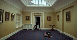 事实上,电影中包括男主在内三个男房客的对话暗示了所谓的降格为动物根本只是一个虚伪的谎言,用来包装残酷的谋杀与肢解。在tranformation room里,受害者只有一小部分被移植到了动物身上,大部分身体都会被扔掉。那么这种为了达到“美好的社会”而进行的排除异己的行动,本质跟萨德侯爵书中,在堕落的欲望驱使下对受害者进行的折磨和残害根本没有什么两样:只是前者用虚伪的正义包装过而已。