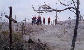 在去往美好远方的途中,姜戈竟然停下与姑娘磨磨唧唧大谈“人生”!就在这时马儿受惊,装着黄金的棺材不幸落入沼泽,姜戈痛心疾首毫不迟疑跳入沼泽营救黄金。眼看姜戈NB的生命就要葬送沼泽,紧急时刻姜戈眼前突然一亮,一双世界上最好看的手把他拽上了岸,可惜就在这时将军赶到,“砰”的一声,姜戈不得不与这双天下间最美丽的手告别,姑娘中枪瘫倒在地。姜戈看见躺在血泊中姑娘热泪盈眶,在他悲伤的瞬间,将军念及旧情,只废了他的双手,姜戈悲伤到都没有感觉到痛。