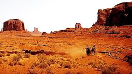 但约翰·福特选择了惊奇而非悬念。当一群人发现了被杀害后扔在路边不要的死牛的时候,他们突然意识到自己中计了。这时候画面马上跳到伊森哥哥一家人那,他们远远看到了印第安人在接近他们的房子。但这最后的惊奇却是以早餐场面的冗长乏味为代价的,因为不知道接下来会发生的重大转折,所以早餐那一段根本无法吸引起观众的重视,他们的谈话也就变成纯粹的家长里短。