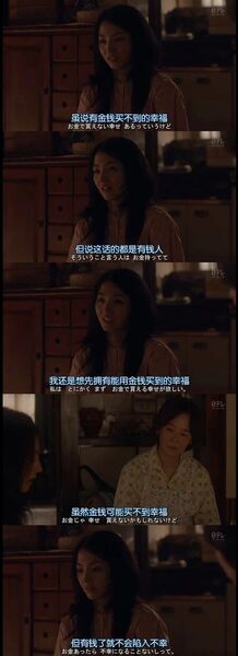 坂元裕二似乎热爱原谅这个主题,在自己最近的好几部剧里不断讨论。woman里,小春和母亲都没有选择原谅而是选择了家族。当最后一集小春躲在门廊简单却郑重地对妹妹捐赠骨髓表示感谢时,这大概是她能够做到的最大限度的「円居せん」了吧。人生的过往哪有那么容易释怀,坂元剧本里的现实代入感才是最动人的地方。就像小春在第一集里就说,“虽然有金钱买不到的幸福,但说这话的都是有钱人。我还是想先拥有能用金钱买到的幸福。虽然金钱可能买不到幸福,但有钱了就不会陷入不幸。”女性题材本不好驾驭,而坂元似乎深知世事之艰,他只是把这些道理细细撕开,揉进剧情里,这是好编剧的功力。