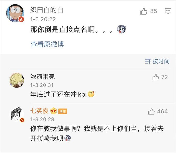 但是七英俊因为种种顾虑,一开始没有点出具体的人名,这是她回复的一个网友让点名的评论: