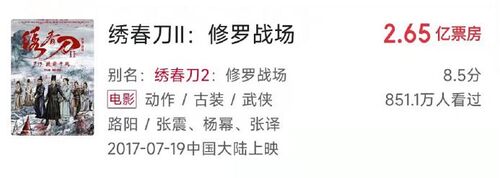 《绣春刀II》上映后获得了2.65亿的票房,口碑评分也有着7.2分。
