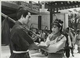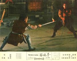 真正让人眼睛一亮的是天魔剑严天的登场。那个木头刨的很有个性,让人想起了东方牌刺绣。接下来导演连续给出两个相当抓人的悬疑桥段:先是午马赶来报信,街上随即銮铃声起。严天自以为师侄把仇家引来,一怒之下将其砍死。可倚窗观瞧,才发现对方只是路过,并没发现自己的行踪……既刻画了角色,也紧扣主题——夺魂铃。紧接着,张翼夜宿客栈,门外人影闪动,甚至观众都会以为是天魔剑在先下手为强,却原来是香香驾到……