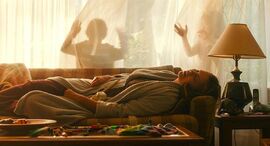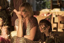 紧接着第三个孩子出生,夜夜被哭闹声吵醒的是Marlo,忍受涨奶痛苦的是Marlo,背着婴儿继续去儿子学校和校长虚伪沟通的还是Marlo。而丈夫呢,上班出门前的一个吻,下班回来后逗逗小婴儿,竟已是抚慰般的温柔。晚上只会躺在床上打游戏,还会看着筋疲力尽的Marlo对着餐桌一脸阴沉,”Frozen piazza?” 而两个大孩子只会在制造麻烦的间隙,对着Marlo严重走样的身材尖叫,”What happened to you, mom?”