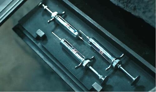 只要打一针在自己身上,立刻就会中毒,然后获得一分钟力大无穷的能力。
