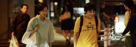 本片中给我印象最深的就是男主人公,他外向热情而又敏感,他在热情的同时也会注意别人的感受,是一个温暖的小伙。然而在面对喜欢的人时,他的那份单纯就像孩子一样,居然提出每年和女主人公见一次的要求,这个要求其实太低了,普通人为了争取自己的爱情,可能会想很多的办法争取多和对方见面,而这件事对于剧中的男主人公来说却是困难的,这也是他可爱的一面,这也源于在上学阶段女主人公在她心里一直是一个女神的存在,因而他总会担心自己的行为给自己的女神造成不好的印象,因而在与对方交流时总是显得小心而又笨拙。但偶尔他又会显示出勇敢坚强的一面,在为爱挺身而出被打掉牙齿时,他选择沉默应对不给他人添麻烦。而在女主人公的内心里把自己当成一个普通人,甚至成人的她过得并不如意,整日整夜都活在真二地阴影当中,那种愧疚感折磨着她,直到光田出现的那段时间才给她带来一点快乐。而光田不太了解她的内心,因而两人之间也存在不少的隔阂,但通过回忆上学时骑单车的美好,草莓之地的回忆,又把他们俩人的心拉在了一起,于是她决定 突破心里障碍和光田来一次单车冒险,最终她释怀了那份复杂的情感,紧张孤独的心得到一丝滋润。本片在表演上可能动作表情有点浮夸,如果能更自然一些相信会更好。