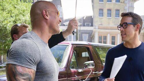 戴着骷髅头面具闯入银行,却被Guy反杀并夺走墨镜的劫匪,是由巨石·强森声演的。瑞安·雷诺兹曾在强森主演的《速度与激情:特别行动》中客串出演。