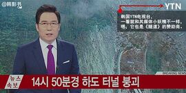 【槽点03】坍塌事件发生后,YTN电视台的主持人说:「观众朋友们,大韩民国的安全又一次坍塌了,这次是开通不到一个月的隧道悲惨地坍塌了。」▼