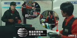 【槽点04】河正宇接到来自SNC电视台记者的电话连线,只为抢独家、占头条,完全不顾及被困者心理状态和现实情况,冒失告诉对方抢救需要很长时间。救援队长吴达洙对其一阵训斥。▼