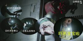 【槽点10】河正宇在隧道里发现了消防栓,拉出消防带,突然跑出来一只蜈蚣,吓了一跳。▼