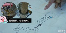 【槽点12】钻孔机终于打到隧道内,却发现因为图纸错误,离河正宇被困地点偏离了150米,导致17天白干。▼