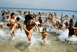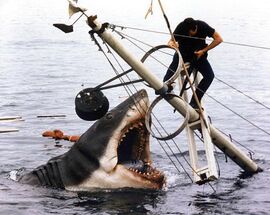 电影《大白鲨》生产于1975年,是影史上第一部票房超过1E美圆的电影,布鲁斯(片中大白鲨的名字)至今也有31岁了。为此,去年位于美国马萨诸塞州的海滨小镇埃德加敦在“玛莎葡萄园”迎来了第一届“大白鲨节”。这部在当时以惊人的特技效果震撼所有观影观众的商业灾难惊悚片,鲨鱼给人们留下了难以磨灭的印象,公映之后,一度使美国的许多度假海滩变得冷冷清清,人们被大白鲨吓坏了,震撼效果难以言表,甚至这部史蒂芬·斯皮尔伯格的成名作长期被定性为一部恐怖片,它也掀起了美国灾难片的“第三次狂潮”。