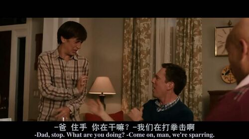 街坊邻居造访,看着别人一家子其乐融融,主角一家只能靠爸爸中二的表演来“扳回一城”: