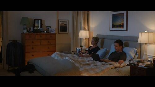 睡觉前,电视上在放搞笑节目,夫妻俩却各有心事,一点乐不起来。