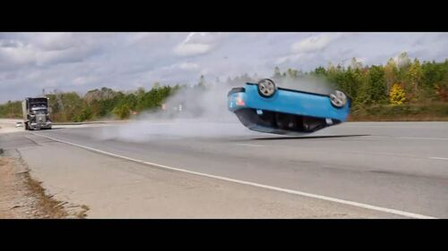 租了一辆非常奇葩的车,各种天(nao)才(can)设计,男主兴致勃勃的每项演示都以失败告终: