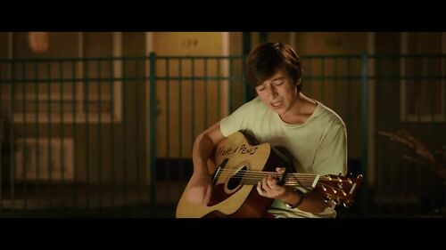 哥哥在宾馆楼下练习吉他弹唱——用那把被弟弟恶作剧的吉他——再次遇到小美女,
