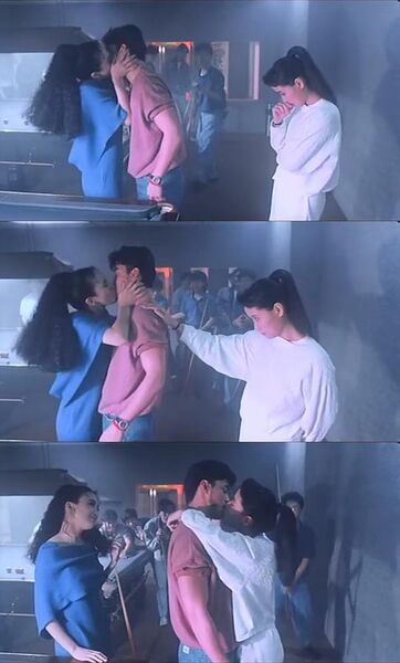 天生条件好的美女从很小的时候就已经进入了主流价值观的衡量体系,周围人会告诉你,只要美丽就好,她们从小就被主流价值观塑造得去追逐美丽,并且要互相比谁更美丽,那么现实是否和她们想象中一样,靠脸就能变现呢?无疑参加选美的都是长得不错的,在这里面每个人都没有绝对优势,并且还要放在一起被一个标准所衡量,这个标准你看不见因为美貌本来就不应该有绝对标准,那么参加选美的人自然会去猜测这个标准,在迎合标准的“媒体之眼”中,她们开始扮演另外一个人,一个符合大众审美标准的美女,而不是做她们真实的自己。电影中有很多组关于媒体的镜头,梁好逑和连子蓉在演播室里面进行场景表演,梁好逑平时思考得比较少比较不自信,所以演戏的时候演得就特别假,因为她一直在猜测别人的标准去迎合别人的标准,演播室外面的工作人员都在笑她只会“抖胸”毫无演技,其实这些人就是喜欢大胸,他们希望展示美女的低俗来显示自己的“智慧”。而连子蓉读过一些书,她演戏比较真实一些,并不十分想要去迎合别人的标准,她知道别人都在嘲笑选美这个事情。