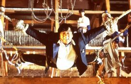 成龙1989年自导自演的动作喜剧片《奇迹》改编自西片《一日贵妇》,宣称制作费逾六千万,足足花九个月才完成,在当时创下了港产片制作的空前纪录。影片曾获1989年香港电影金像奖最佳男演员、最佳剪接、最佳艺术指导奖提名。全片制作豪华,娱乐素材丰富,云集了成龙、梅艳芳、叶蕴仪、归亚蕾、柯俊雄、午马、董骠、吴耀汉、吕方、田丰、倪震、张学友、草蜢、元彪、罗烈、卢惠光、倪匡、钟镇涛、楼南光、黄沾、周比利、楚原、吕良伟等一大批知名演员。这些人中随便哪一位都是港台娱乐圈里的重要人物,可是他们却同时出现在成龙的这部《奇迹》里,足以见成龙的强大号召力。在成龙的诸多电影里,本片的风格当属于与众不同的一类。影片文武兼备,打头动作与戏剧情节平衡发展,是成龙主演的动作片中特别重视温情和歌舞表演的一部娱乐佳作,能同时讨好各阶层的观众,可以说这是一部合家欢标准电影。