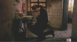 令人惊喜的是昆汀·塔伦蒂诺的乱入,这个猥琐男的角色名是”Pick up guy”,他出现在酒馆里,说了一个猥琐的屎尿笑话,被带入屎尿遍地的厕所后面的密室里,随后被爆头。他前后总共出现了5分钟,但不可磨灭的给这部电影带来了相当的黑色的猥琐的玩世不恭的色彩。第一个酒吧的大门上霓虹灯写着”Clients are always wrong”,第二个酒吧门口标牌上挂着”Members and non-members only”,血浆飞溅,尸体如山堆积在一处,小喽啰刷地板清理血迹都要给特写。