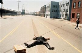 还有那出场特别震撼的仨杀手,我怎么觉着这两男一女,两白一黑,那接受击杀令的调调,那充满暴力的造型,还有那惨不忍睹的长相,干掉人应该有点创意吧,结果三个人抽冷子抽了半天,除了那位脚上套一矫正装置的脑与身体俱残,却又不辞劳苦热情参与创造以及毁灭人类事业的妹子大喊了几声,“干我干我”就被那身后的老黑一枪击中劳拉老妈的倒霉姘头,侦探大叔后脑门,让我着实为那喜欢beach boys的大叔不值。