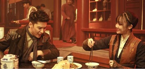 随后剧情就来到十四年后。黑羽会与商会的人在酒楼谈判,事情谈崩后双方就打了起来。正在楼下安心吃饭的刘晶被卷入其中,而旁边刚好还有霍家拳馆的师兄妹。