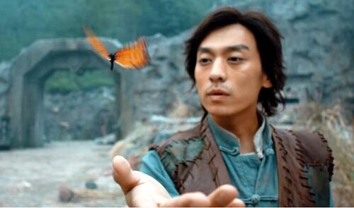为什么要说这个?你没猜错,《新精武门:武魂》同样有类似一幕,刘晶打败血魔罗后却没有杀他,然后说”我的拳,只求生,不求杀“,话音刚落,手中的蝴蝶飞到了半空中......
