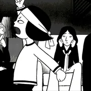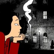 同是穆斯林家庭,我的父母更知道共产主义,和玛嘉父母在伊斯兰原教旨主义的伊朗大逆不道得信仰共产主义不同。我对伊斯兰教的理解来源于资料,而不是父母,幼年生活中我对于宗教了解的只有禁忌,没有其他。搜索这个片子的背景资料时我才了解到波斯的细密画,玛嘉意识流的表述透着细密画行云流水的细腻,通透出作者个人,画风中又很机智地运用了表现主义,这个我到是一眼看出来了,对蒙克的《嚎叫》我更熟悉,玛嘉的命运即将与维也纳牵连时路灯扭曲成嚎叫,直到空袭如哥斯拉降临,小玛嘉小小年纪就表现主义起来,现实如同表现主义般夸张,战争中集体倒下的士兵刀枪斜挺看上去象阿拉伯美术字中的一种。玛嘉用女人的机巧将政治历史渗透进一个女人成长的故事中,保持着天真小女孩的气质,纯真视角,漫画风格中暗含了传统艺术和现代艺术,画面中个人亲历的生活用多角度多视角表现,转述的部分全是平面化的侧面表现,混杂着浪漫想象的部分如同绘画,节奏明快如同阿拉伯美术中图案的线条节奏,黑白表现出伊朗女性的色彩,一个伊朗女性的叛逆在自嘲中解放。